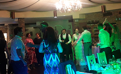 efekti, laseri, djelomično bojanje prostora sale, balončići za vrijeme 1. plesa, dim mašina
