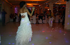 efekti, laseri, djelomično bojanje prostora sale, balončići za vrijeme 1. plesa, dim mašina